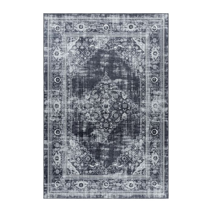 Fiesta Vintage anti-rutsch teppich flachgewebt rechteckig 140x200cm schwarz